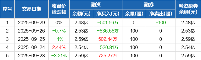 岱勒新材:融资净偿还501.56万元,融资余额2.48亿元(09-29)