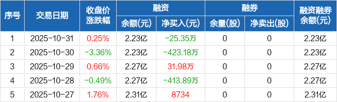 岱勒新材:融资净偿还25.35万元,融资余额2.23亿元(10-31)
