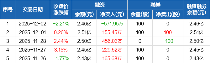 岱勒新材:融资净偿还571.95万元,融资余额2.46亿元(12-02)