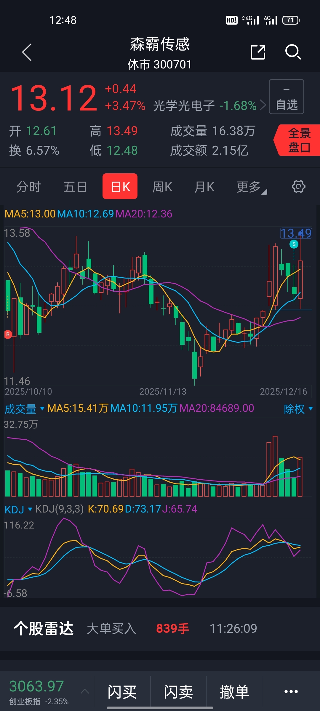 $森霸传感(SZ300701)$ 主力能看见作。昨天割肉今天就涨