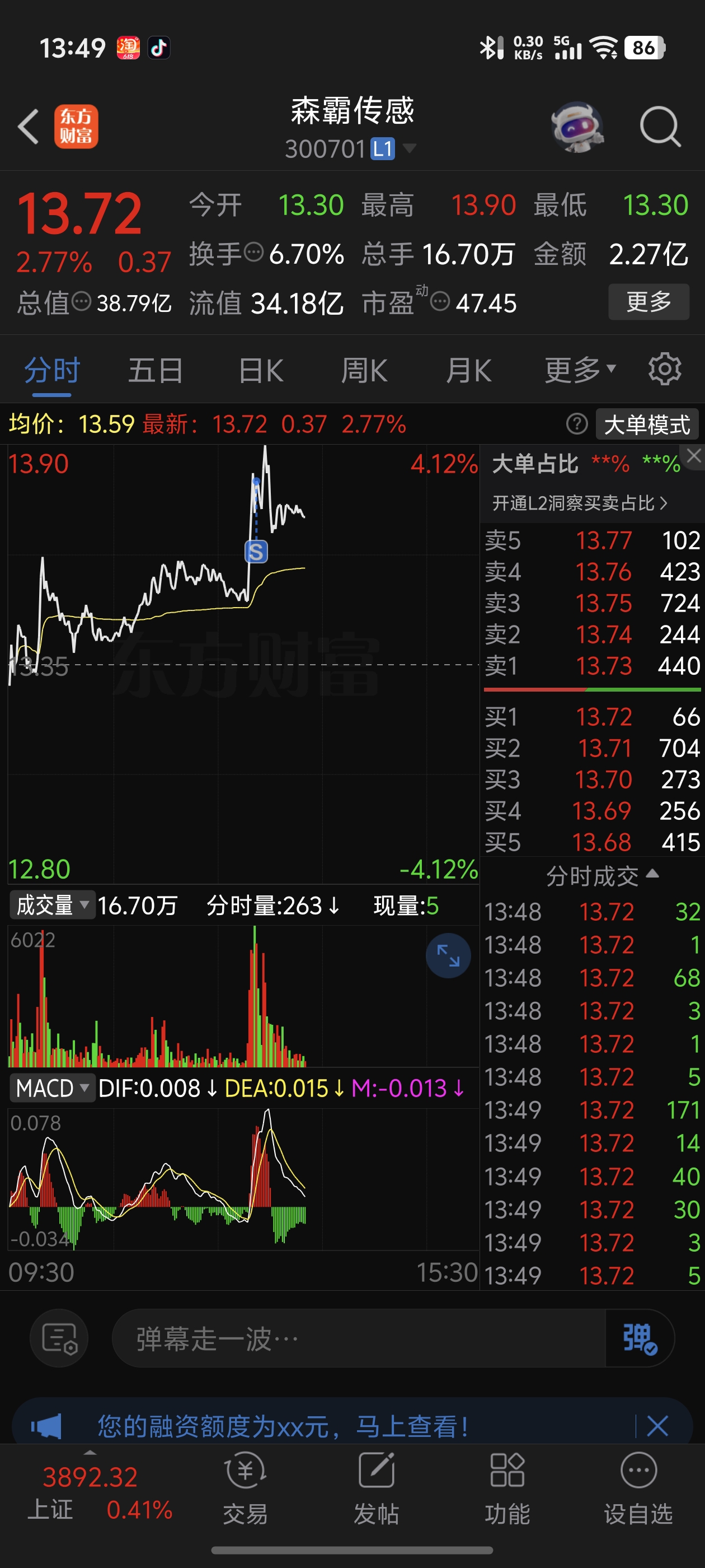 $森霸传感(SZ300701)$ 挣几千跑了!信心不够!