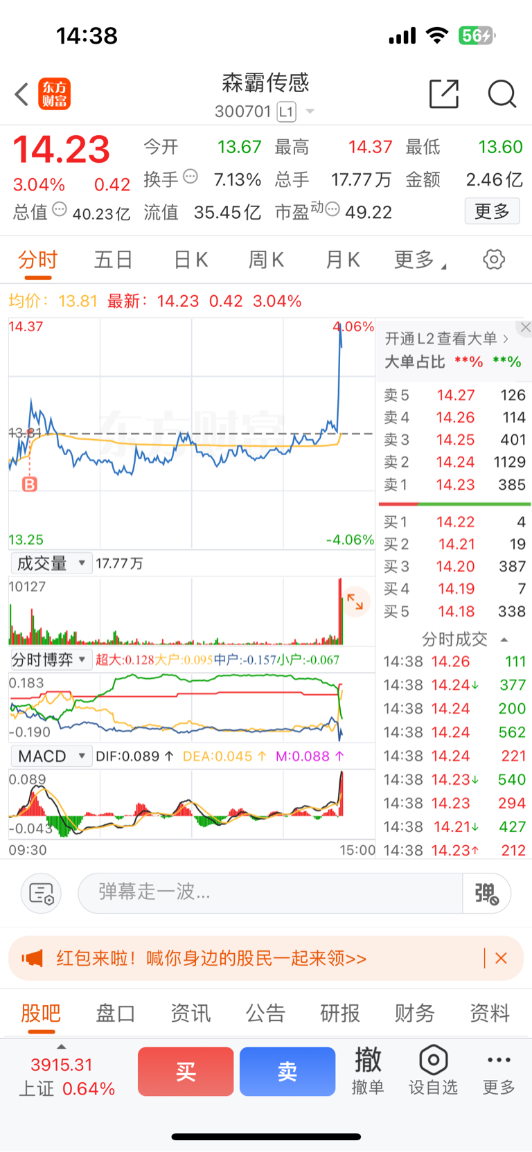 $森霸传感(SZ300701)$ 憋了这么久,终于拉了