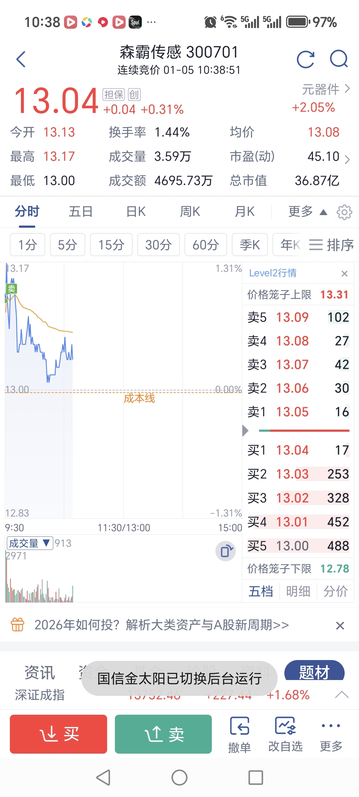 $森霸传感(SZ300701)$ 赚几百跑了没意思