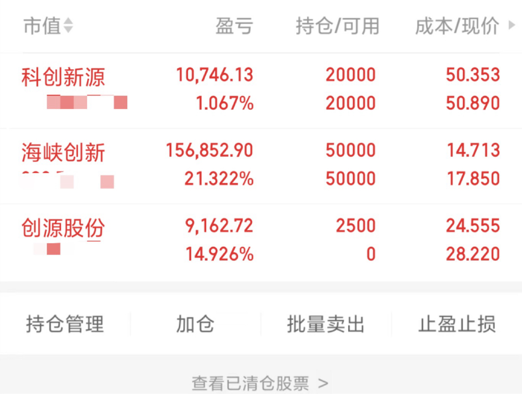 第23天今作:•卖出:•买入:创源股份•继续持有:科创新源,海峡创新明日早盘