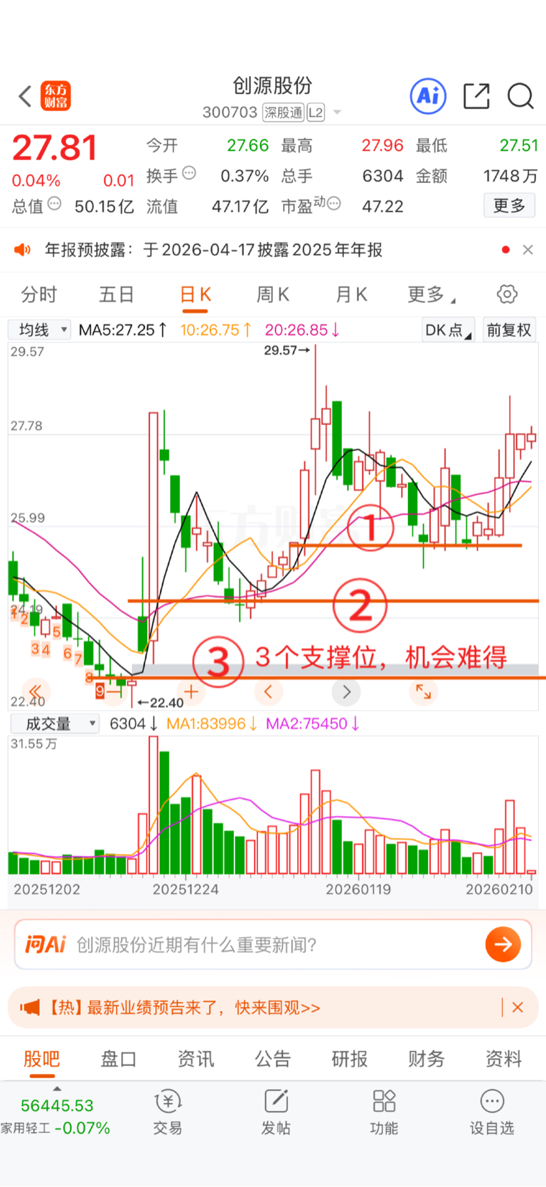 $创源股份(SZ300703)$ 3个支撑位,看得人心痒痒,等待支撑位分批建仓,年后有机会来波行情。现在大盘不稳,好多资金年前进行兑换,结算资金业绩。