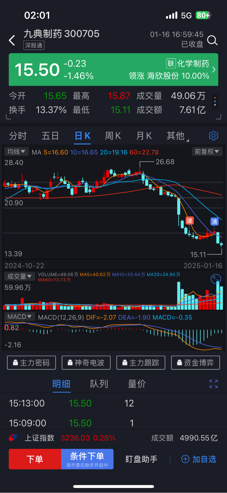 $九典制药(SZ300705)$ 非常成功的出逃。
