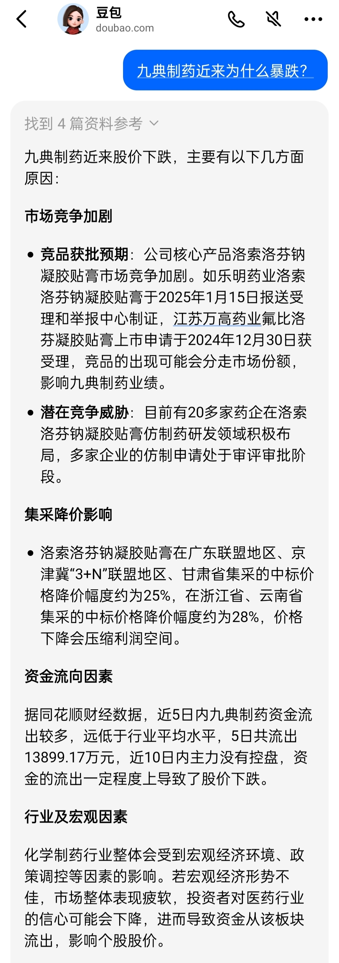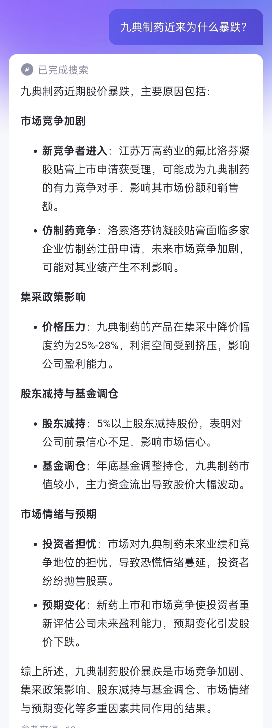 AI分析九典制药近来为什么暴跌?