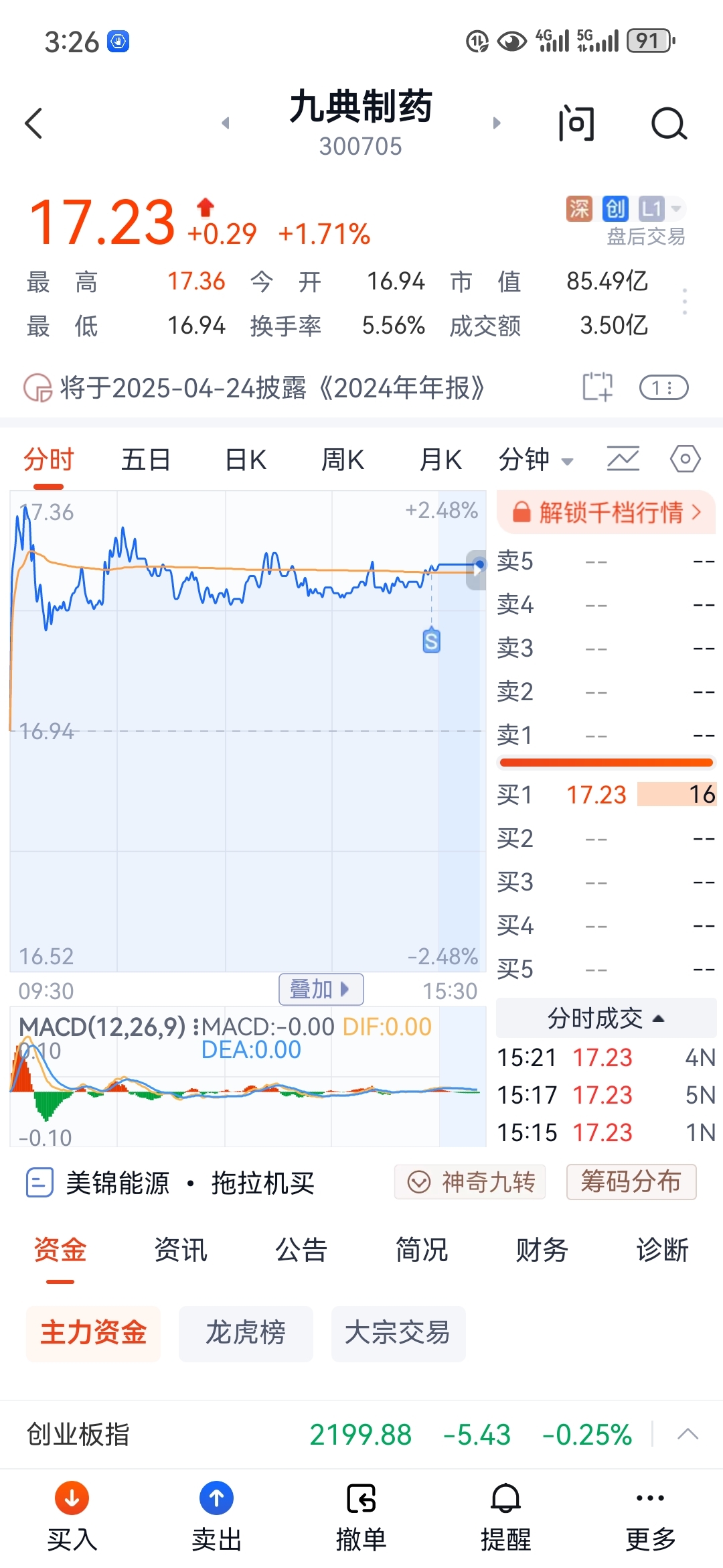 $九典制药(SZ300705)$ 集合竞价走了,等3月底再看。