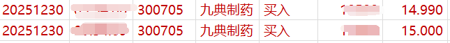 从情况看,当日差价是这几天盘面亮点。由于是今年最后一个交易日,基金持仓个股应该尾盘表现一下。九典截至目前也没有动静,看看尾盘是否出现亮点。