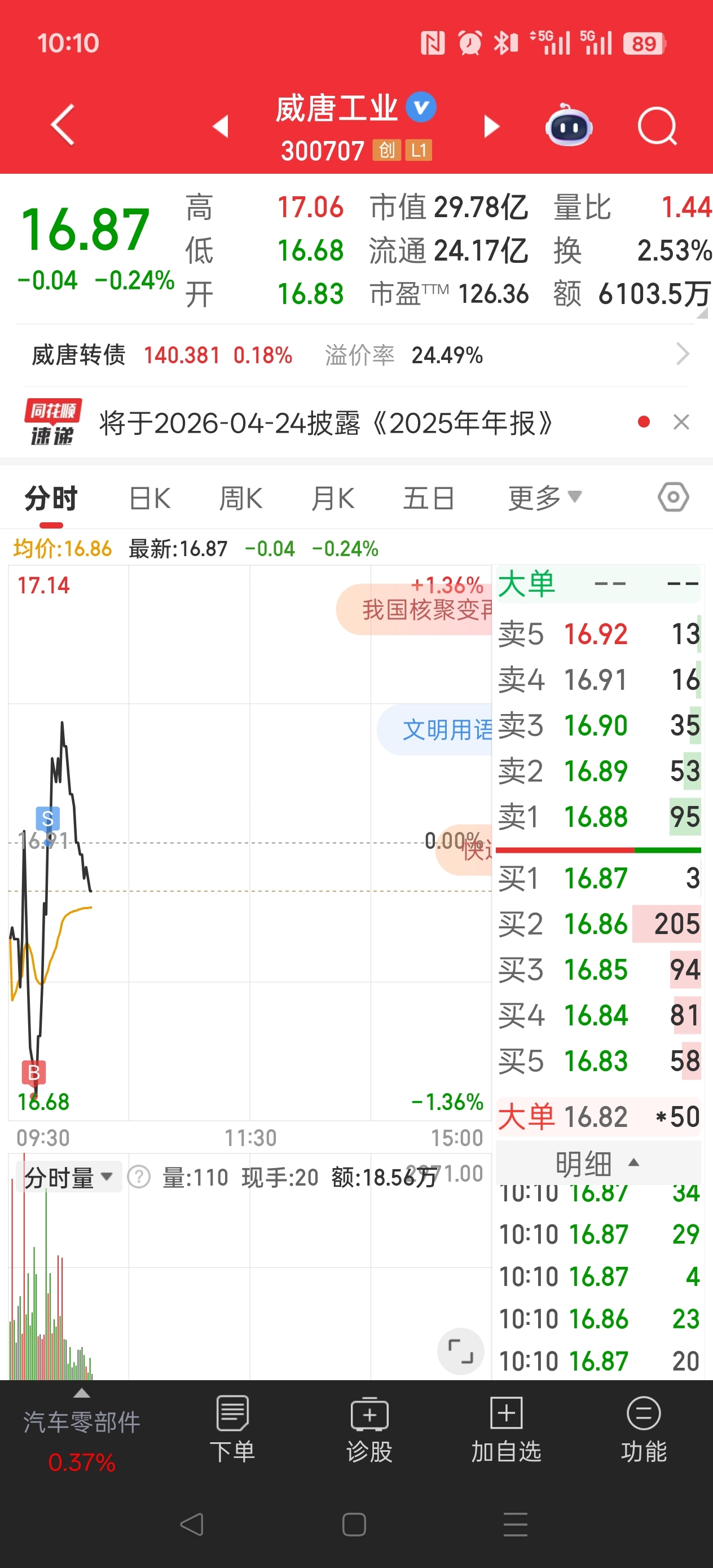 $威唐工业(SZ300707)$ 昨天买底仓就为了更好的做踢,炒股不做踢赚不了钱