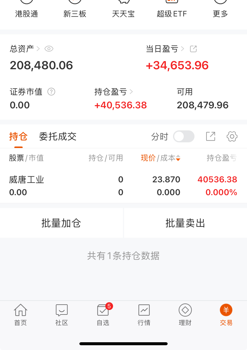$威唐工业(SZ300707)$ 感谢主力,这礼拜真煎熬,周二玩可转债把这个月利润亏完,追高山大电力又是一碗面,星期三进了这里,吃了6个点,第二天下跌熬住了,今天早上冲高也没有卖掉,等到涨停出了,让我瞬间回血