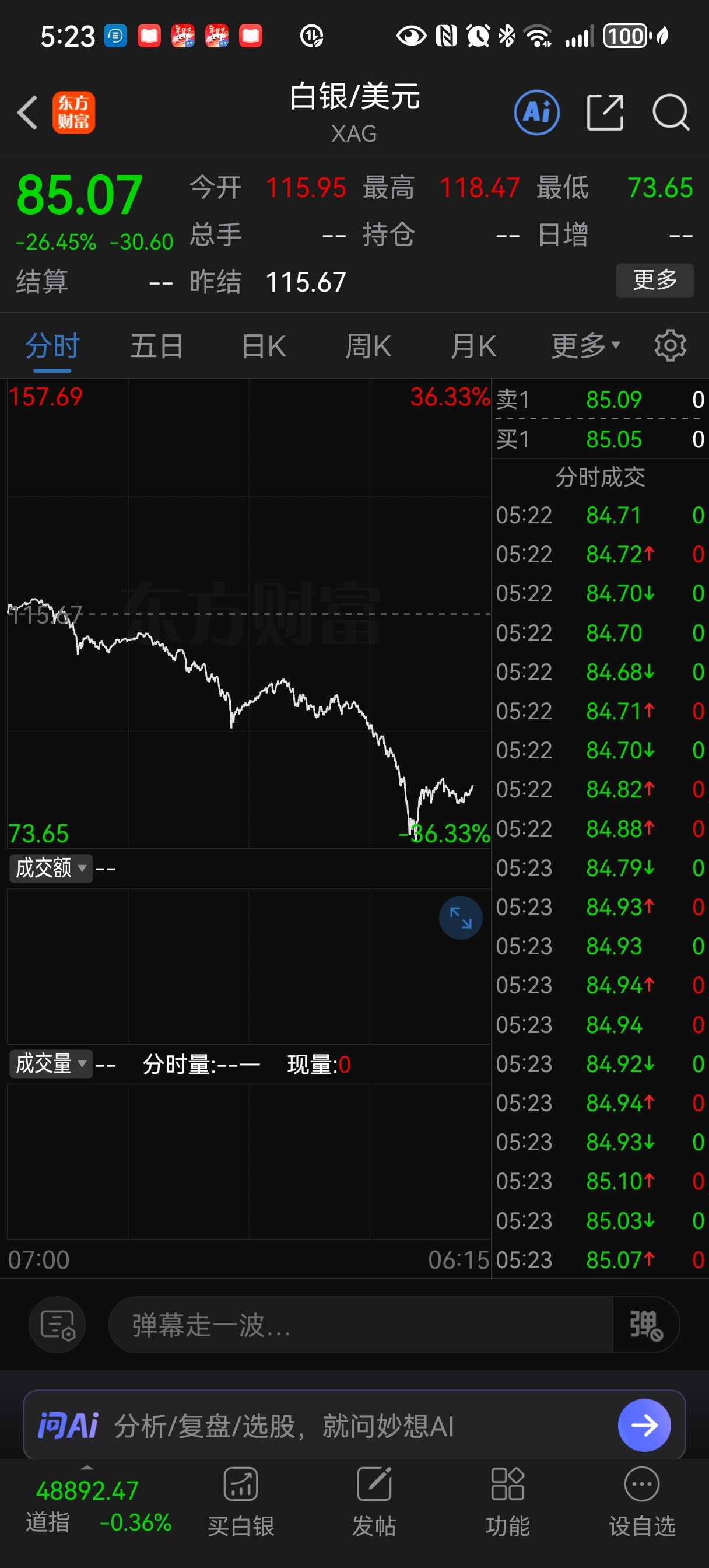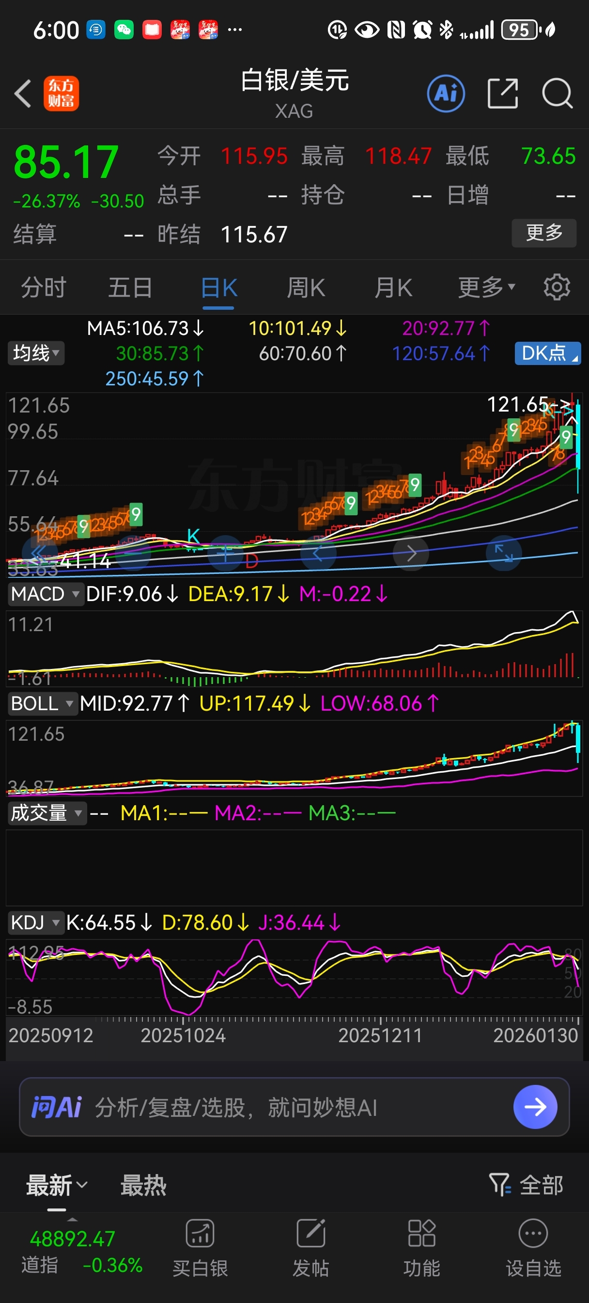 这几天砸盘百分之25,砸哭我们小散,出去追白银黄金的所谓主力,下周亏s!!多行不