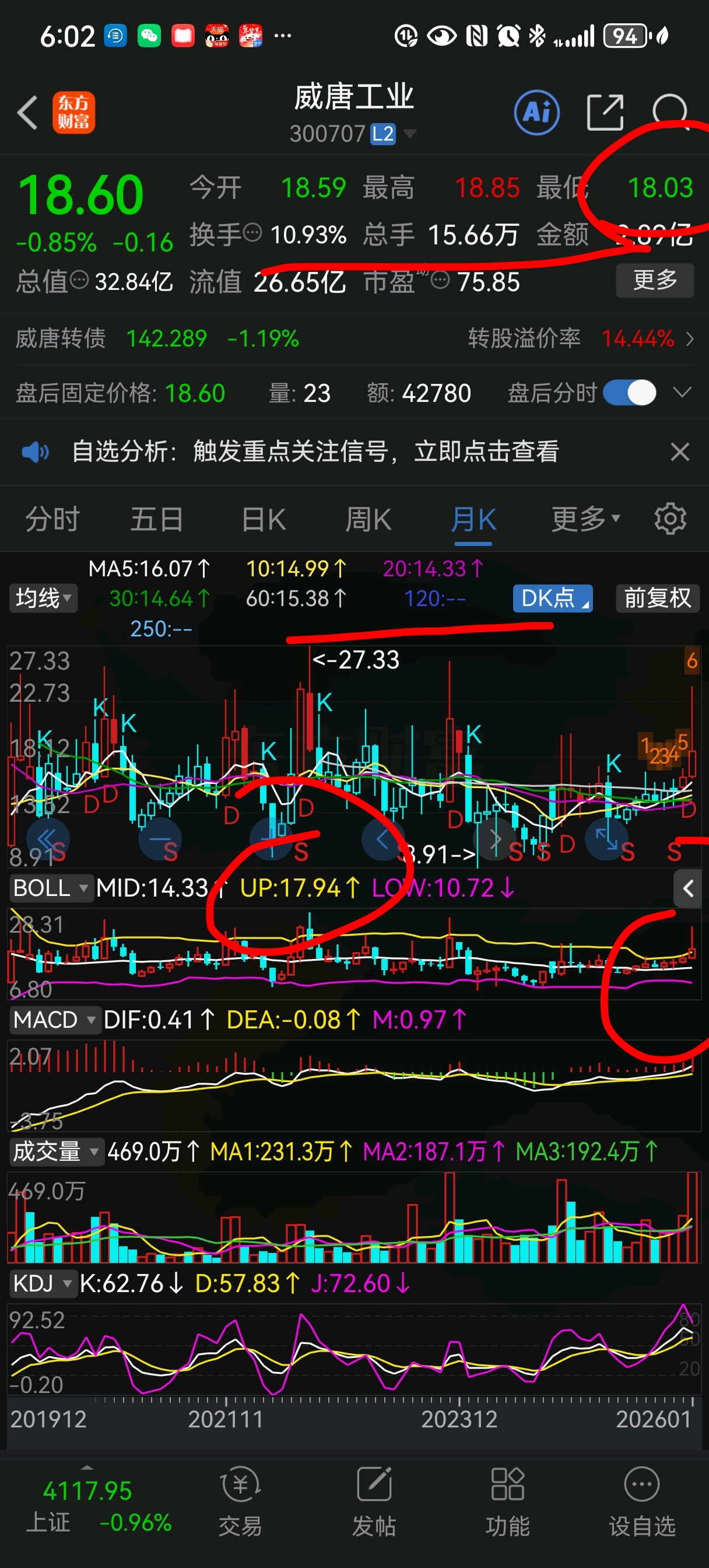威唐月线上轨18未破,小市值下月再战23.98!