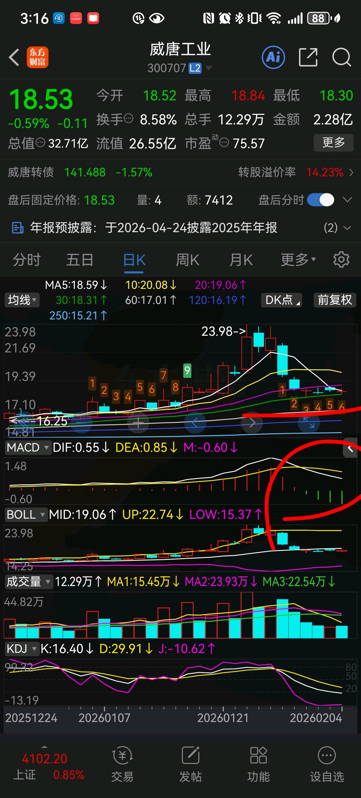 技术上日线破不破还看主力!也不是非跌破!