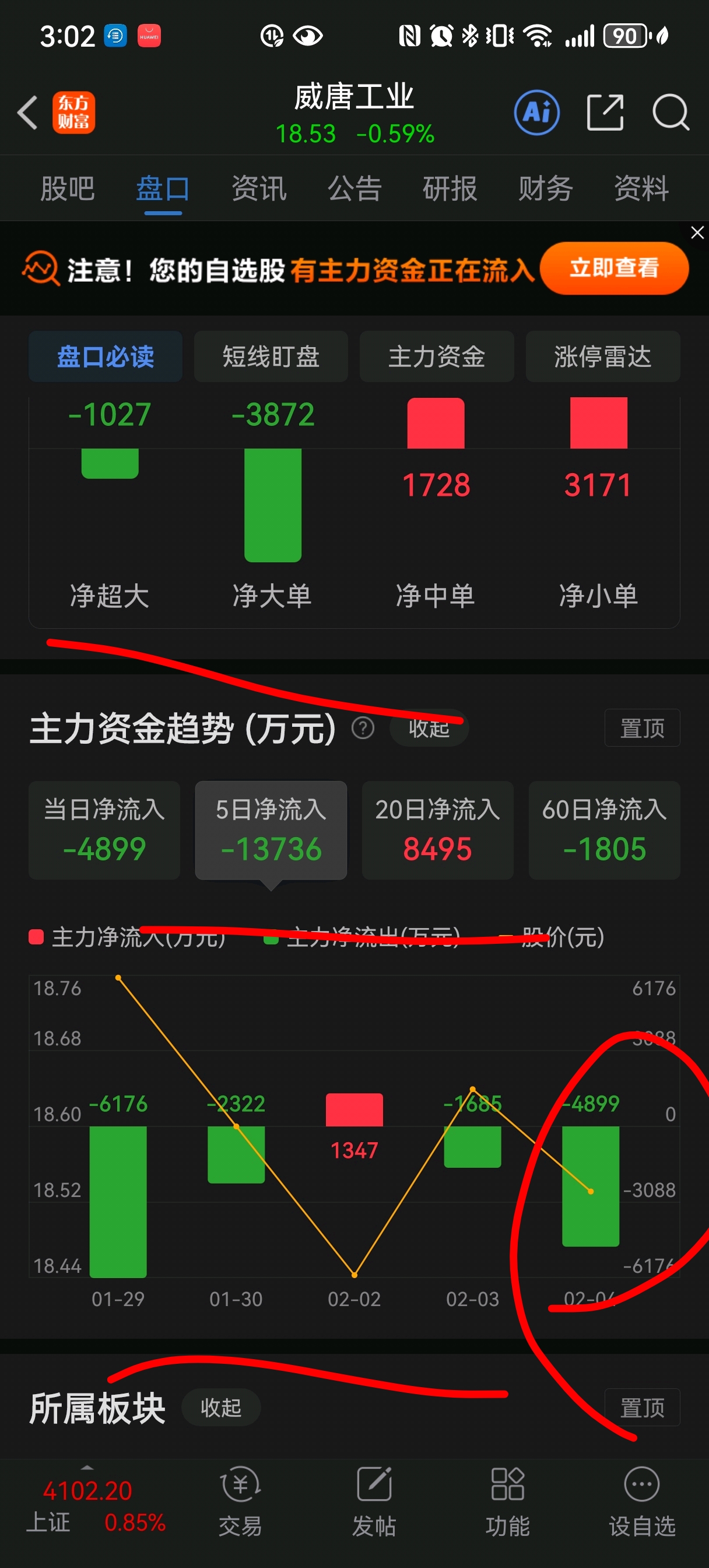 4900万流出没破30日线,空头也势弱了!