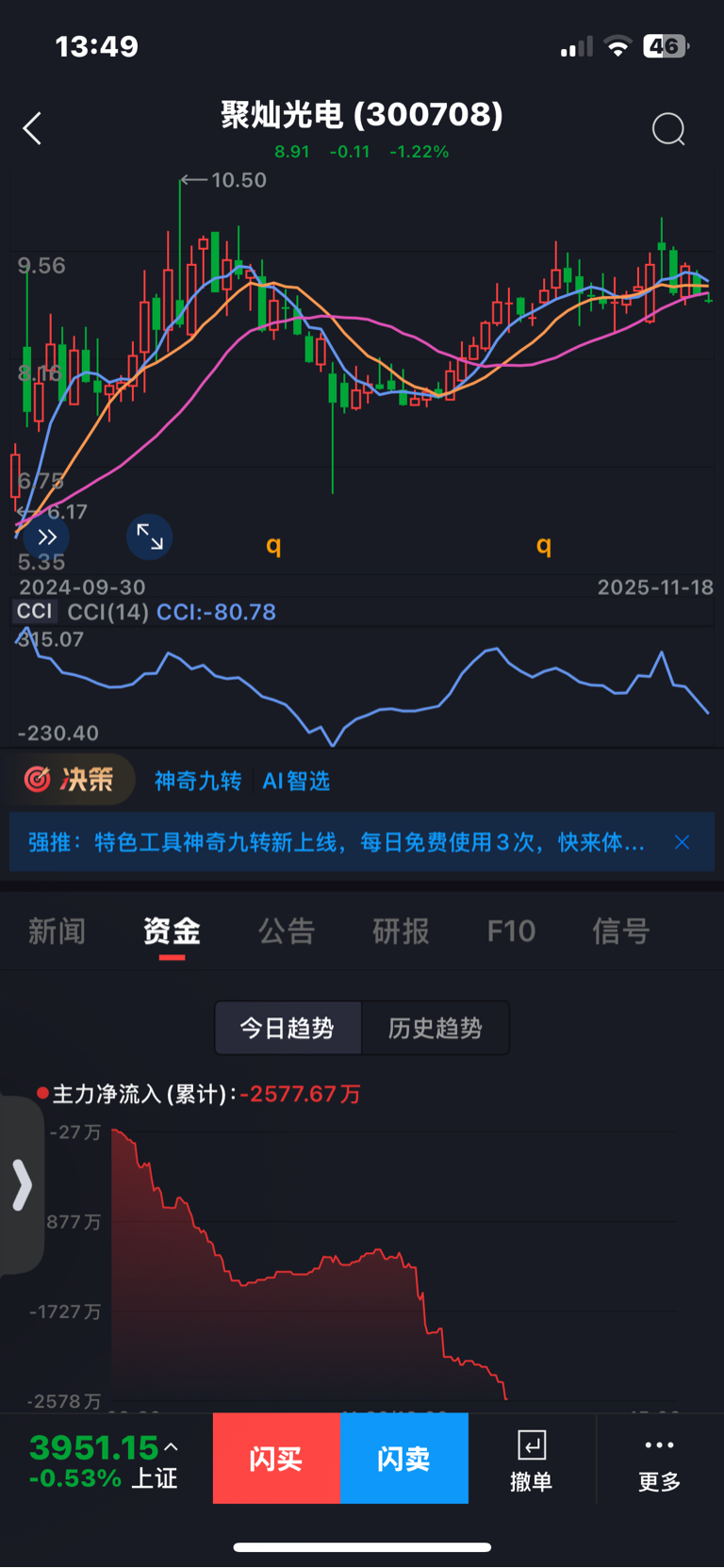 $聚灿光电(SZ300708)$ 周线技术面显示下跌趋势刚刚开启,管住手就是赚!
