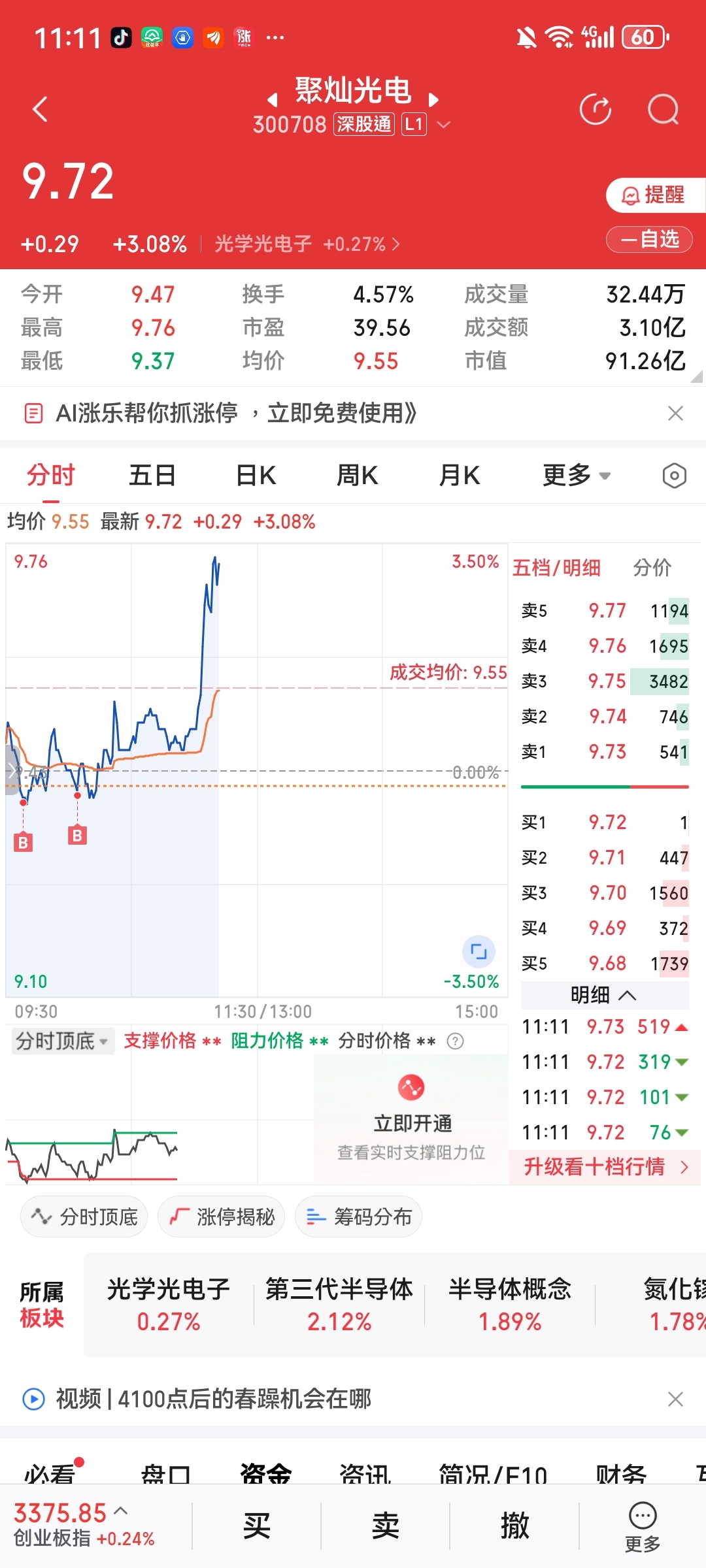 $聚灿光电(SZ300708)$ 今天可以嘚瑟一下吗
