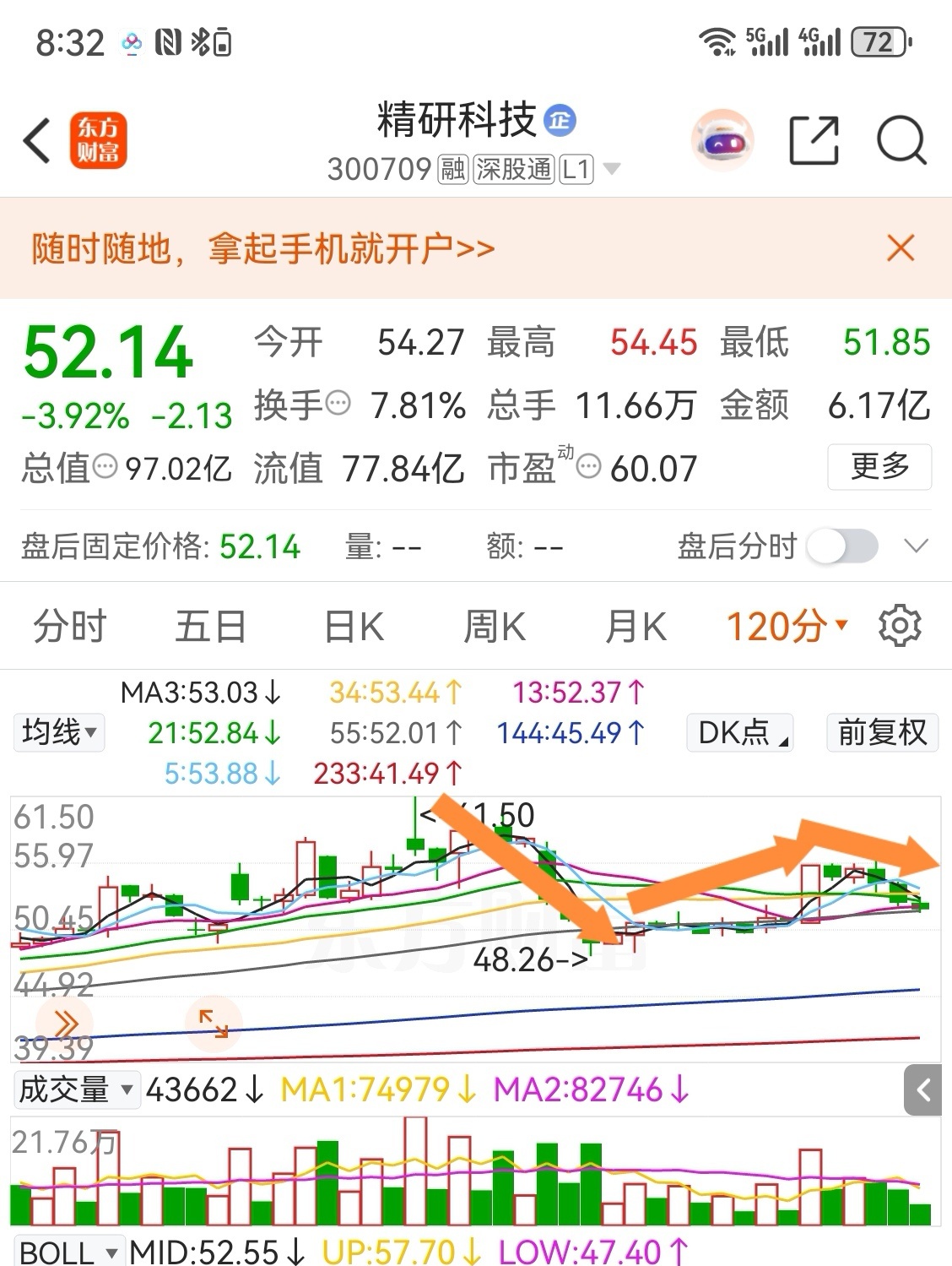 这个股,今天上午52元高抛,下午50.85元接回,一个字,爽!