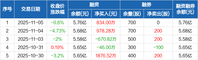 精研科技:融资净买入834万元,融资余额5.76亿元(11-05)