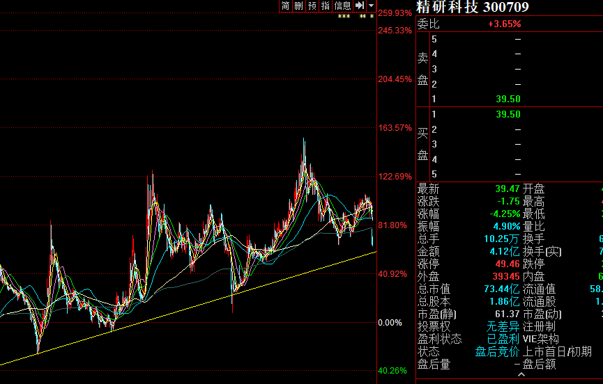 $精研科技(SZ300709)$ 跌破38建仓玩玩,主动买套