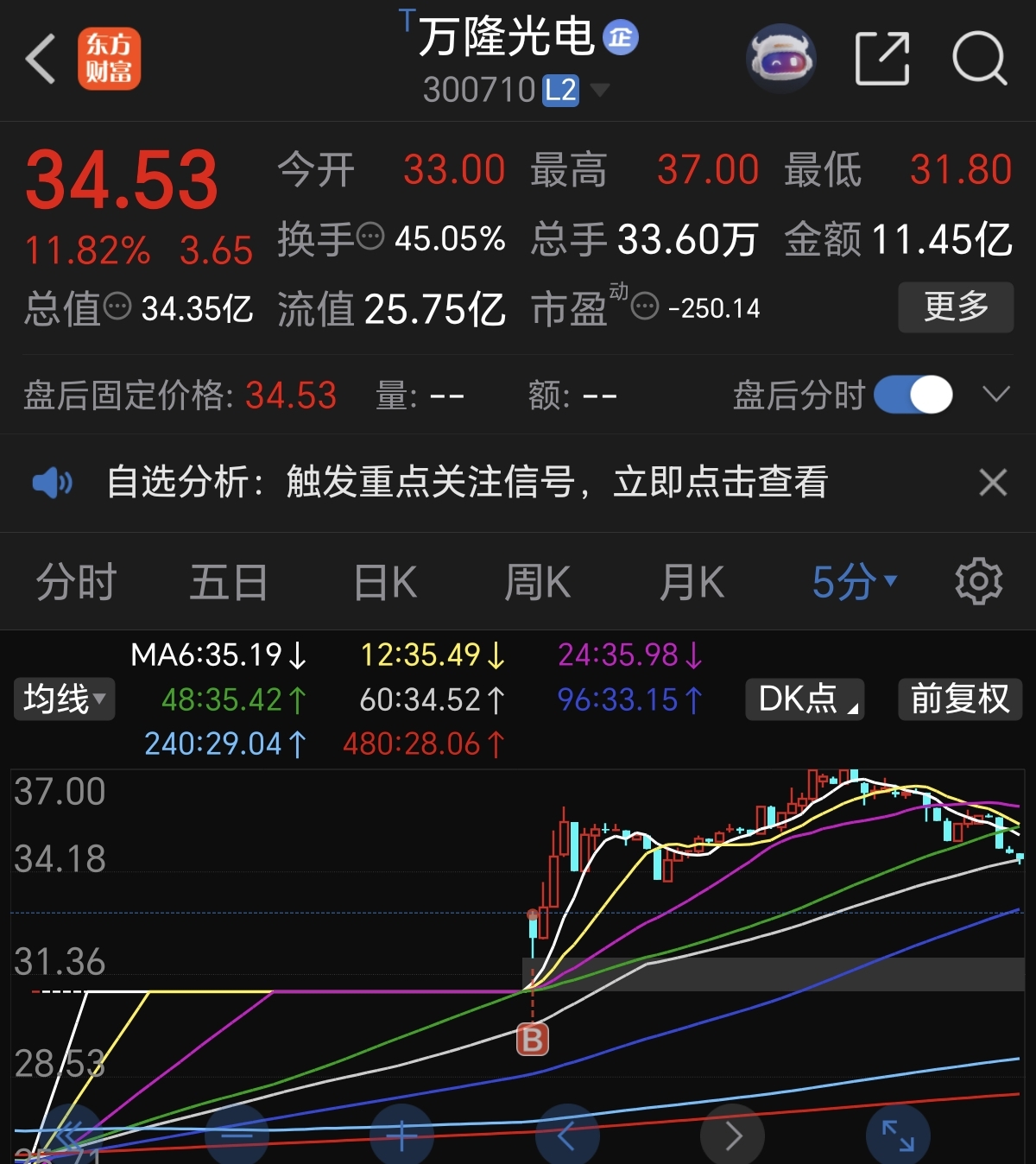 $万隆光电(SZ300710)$ 今天我竞价买了,不过觉得还是跌回26会涨得空间更大一些,主力周一这货摁跌停吧
