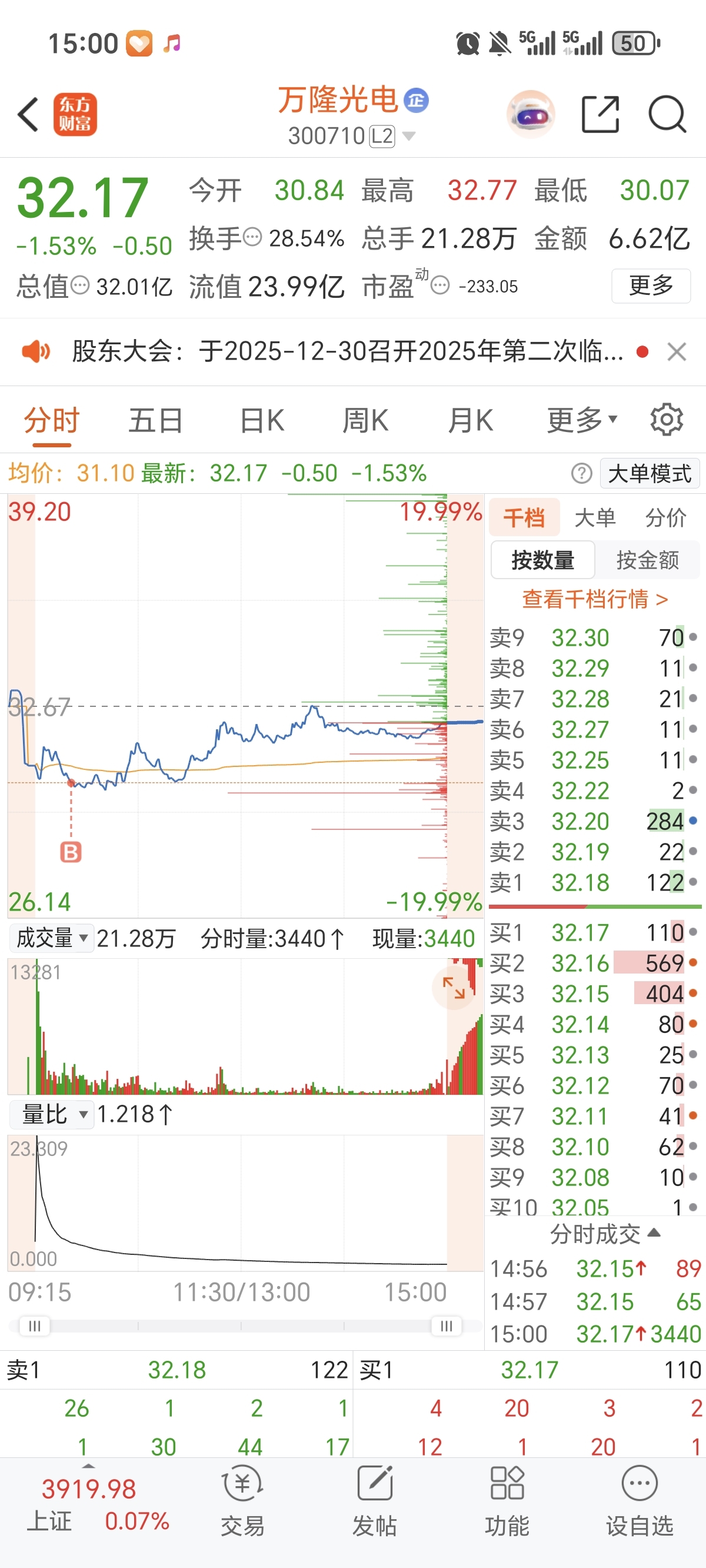 $万隆光电(SZ300710)$ 上午9个点卖了康芝进来这里吃了6个点