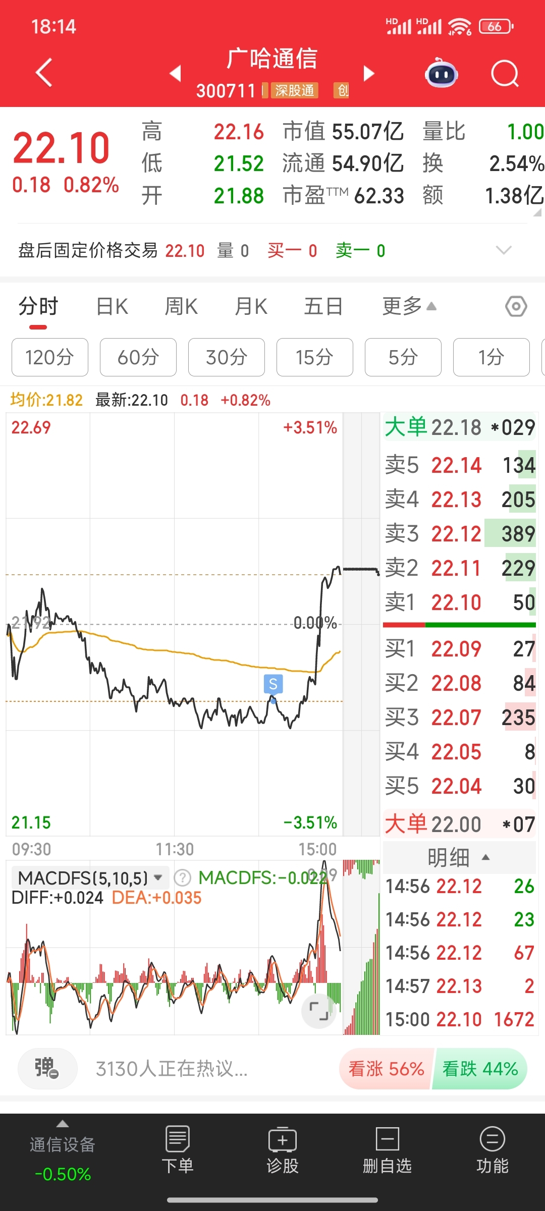 $广哈通信(SZ300711)$ 我不卖你不涨,是我影响大家赚钱了,割在最低!