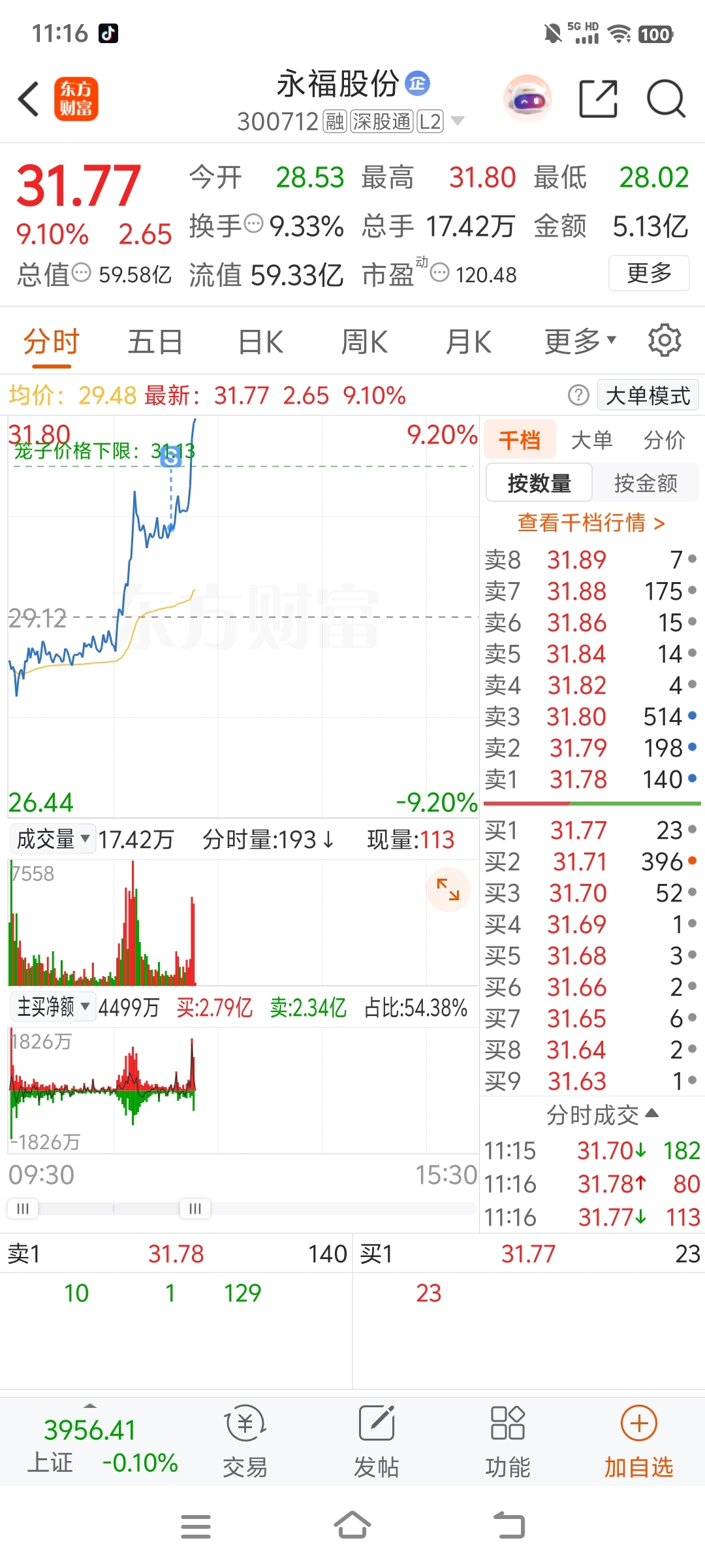$永福股份(SZ300712)$ 啥也不说了,不敢再接回来了
