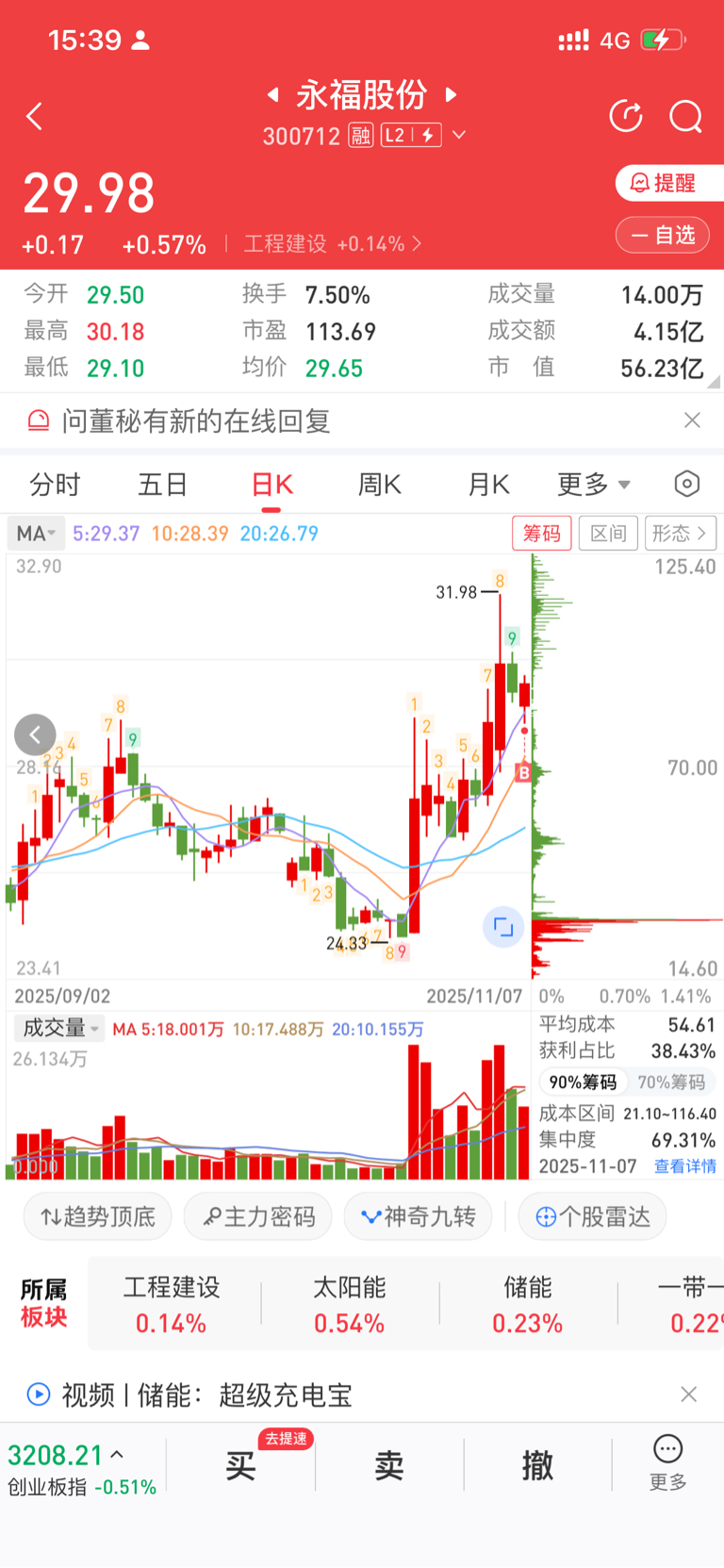 $永福股份(SZ300712)$ 按照计划,回调第二天收盘如果站稳5线进场。目前已经开仓,感觉良好。