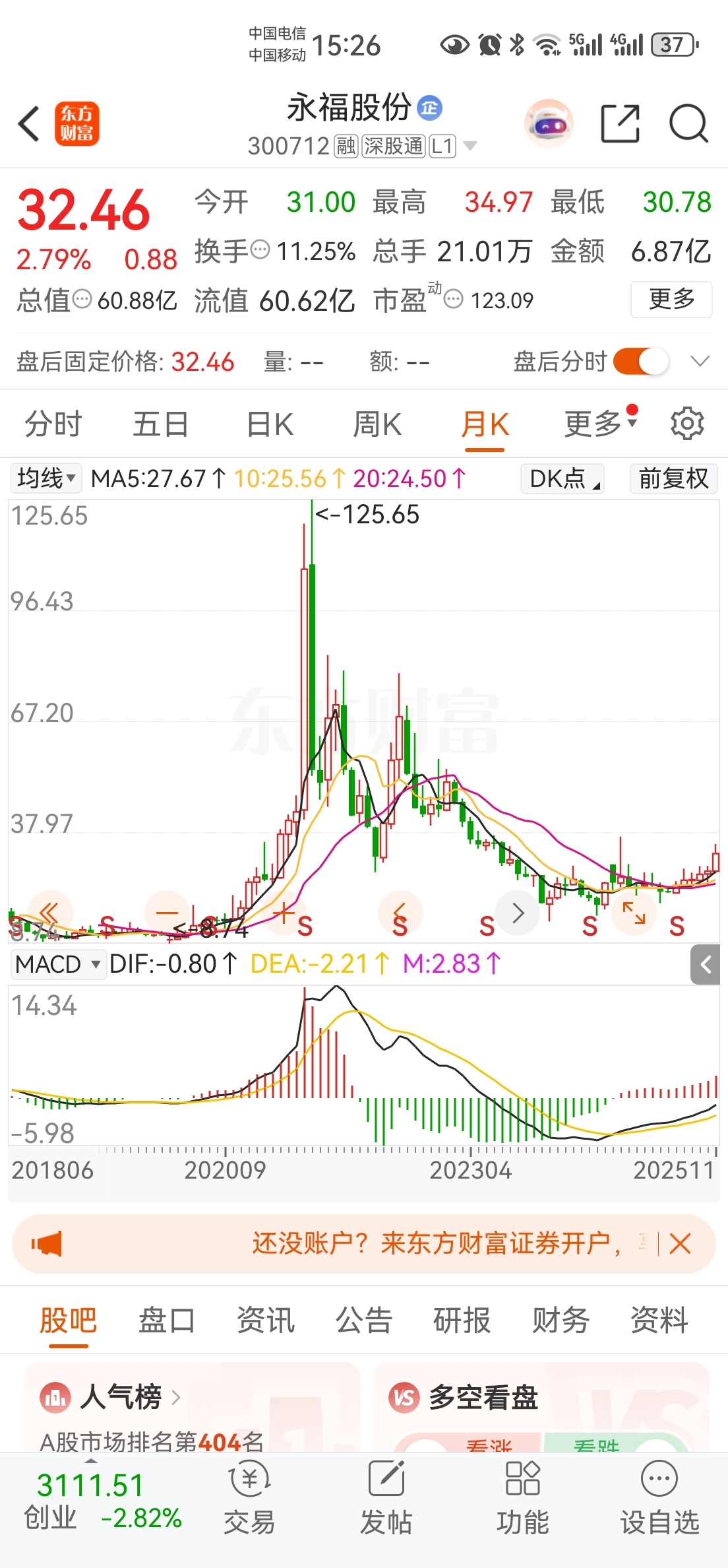 $永福股份(SZ300712)$ 看着月线图,多漂亮啊,168指日可待!