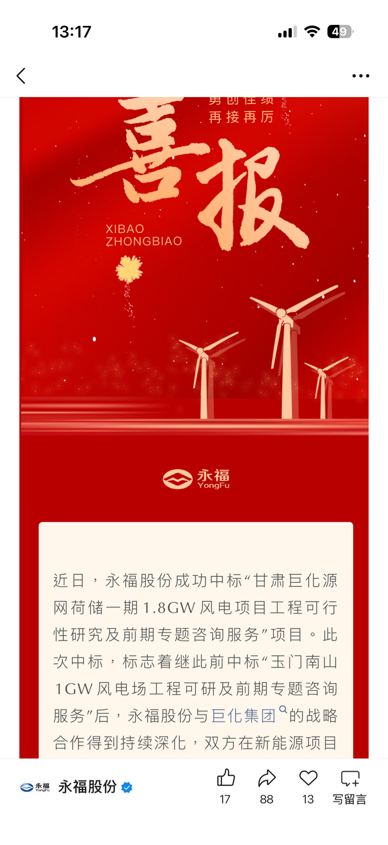 $永福股份(SZ300712)$ 又中大标段了
