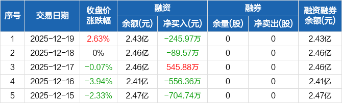 永福股份:融资净偿还245.97万元,融资余额2.43亿元(12-19)