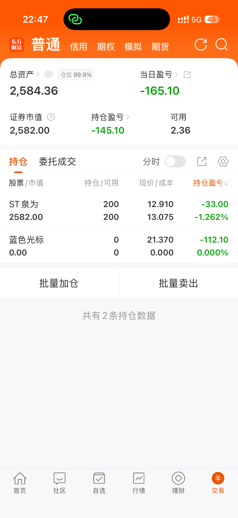 我今天刚满仓,好怕把我钱跌没了。