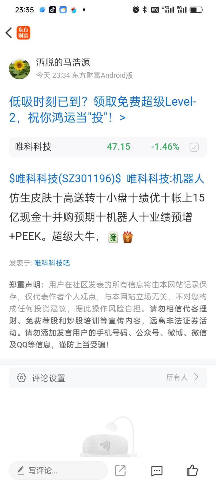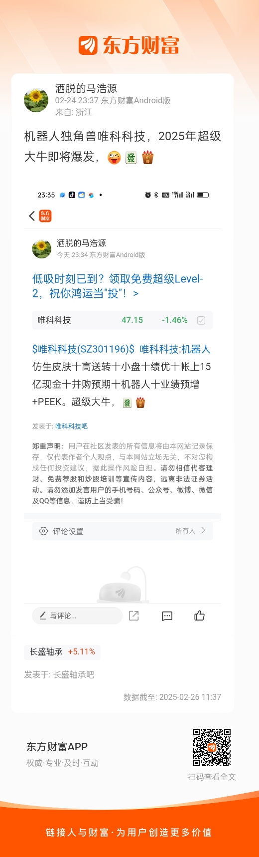 温馨提示: 1.根据《证券法》规定,禁止编造、传播虚假信息或者误导性信息,扰乱证券市场;2.用户在本社区发表的所有资料、言论等仅代表个人观点,与本网站立场无关,不对您构成任何投资建议。用户应基于自己的独立判断,自行决定证券投资并承担相应风险。《东方财富社区管理规定》