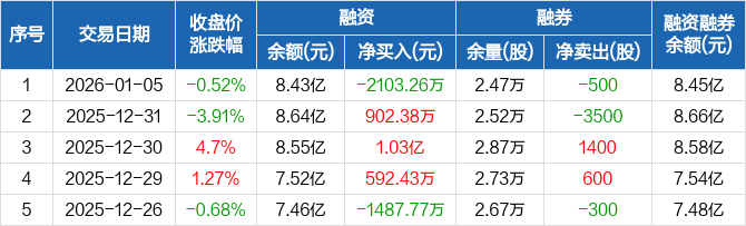 长盛轴承:融资净偿还2103.26万元,融资余额8.43亿元(01-05)