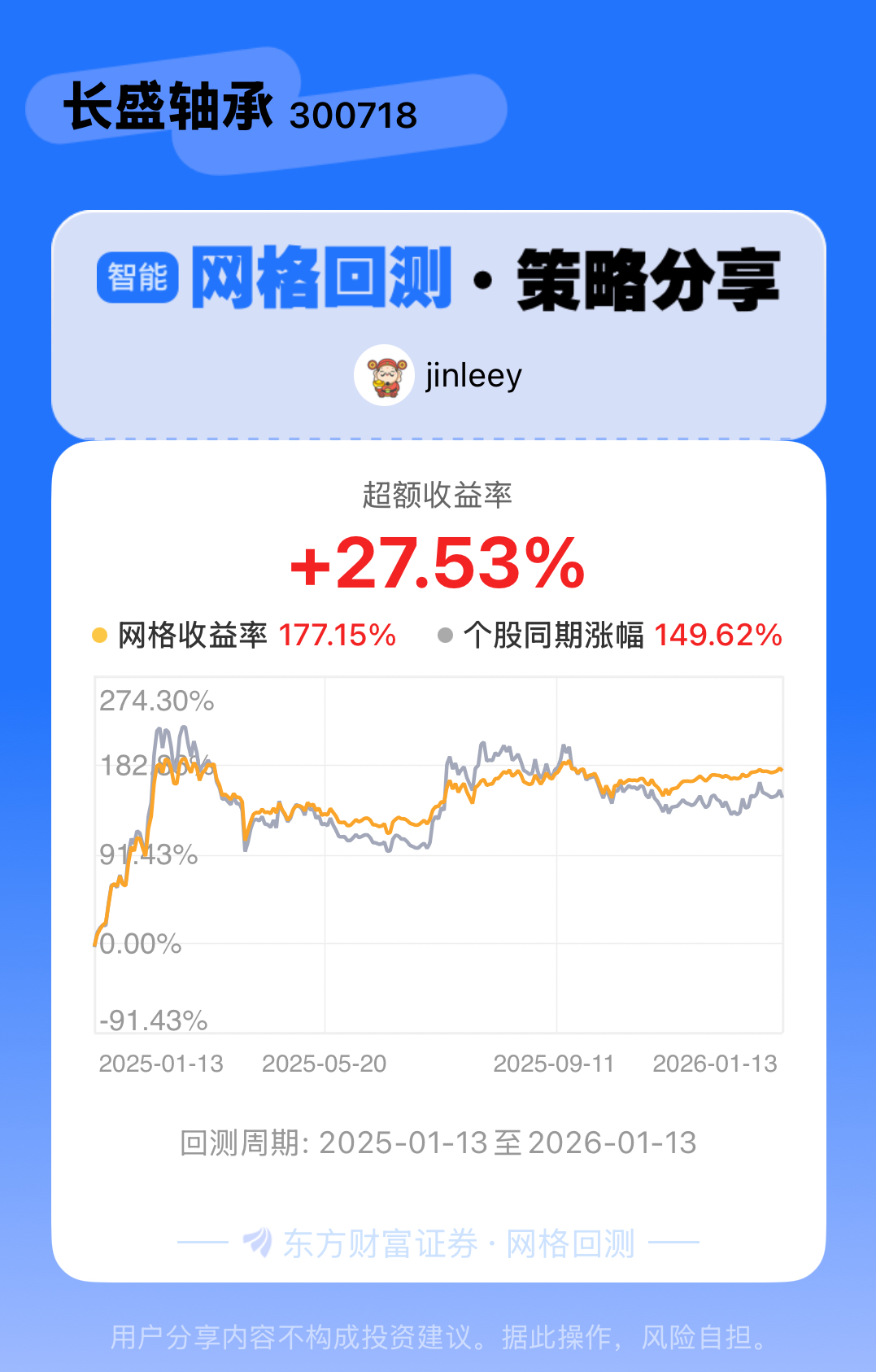 #条件单交流# #网格交易晒单#我使用网格交易回测了最关心的个股,朋友们走过路过看看我的收益~$长盛轴承(SZ300718)$