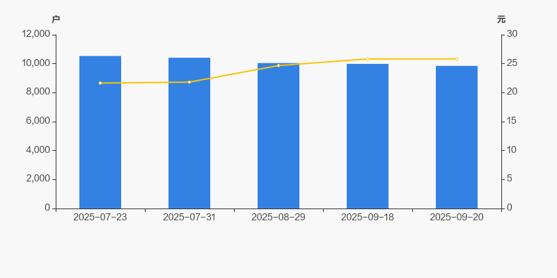 截至2025年9月20日,公司最新总股本为1.95亿股,其中流通股本为1.75亿股。户均持有流通股数量由上期的1.75万股上升至1.77万股,户均流通市值45.8万元。
