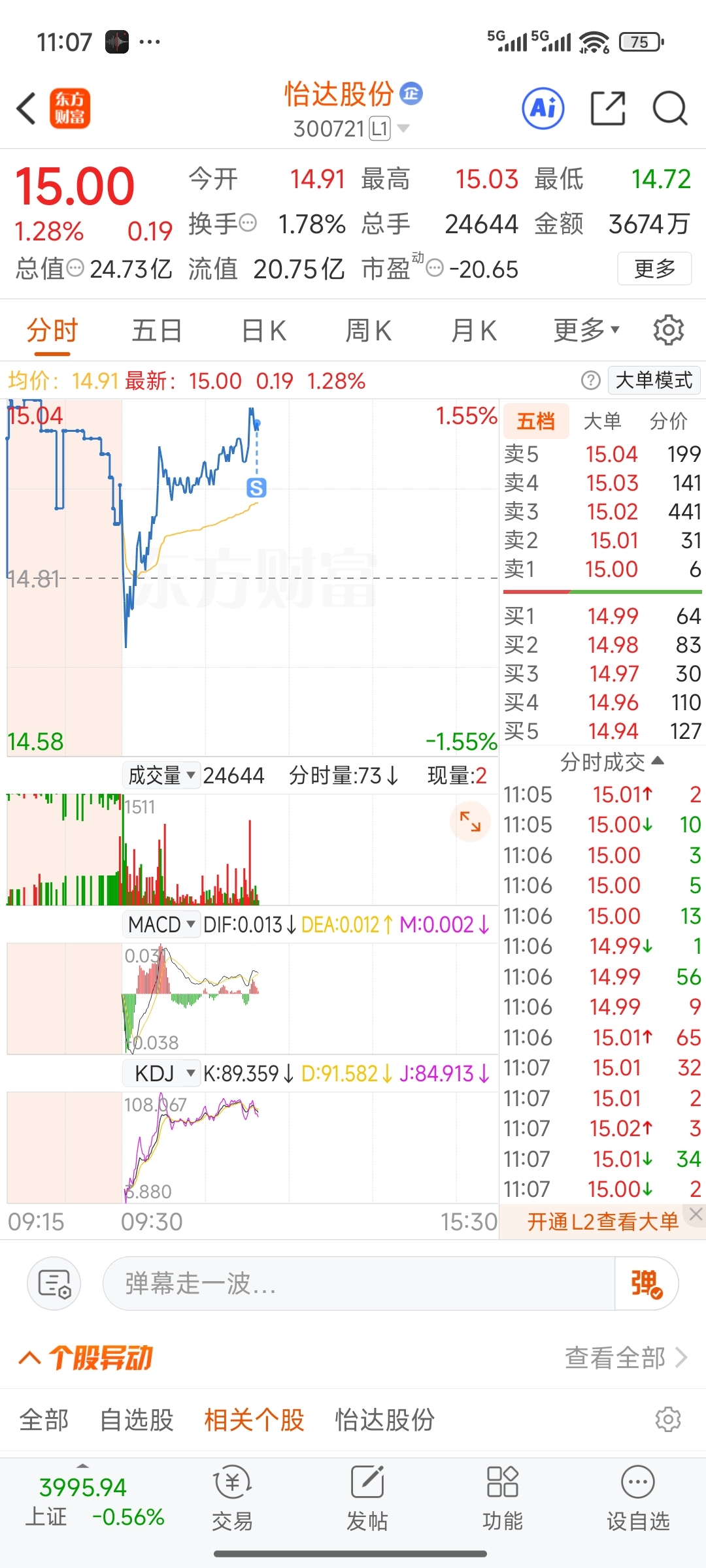 $怡达股份(SZ300721)$ 做t资金终于出来了,感谢主力