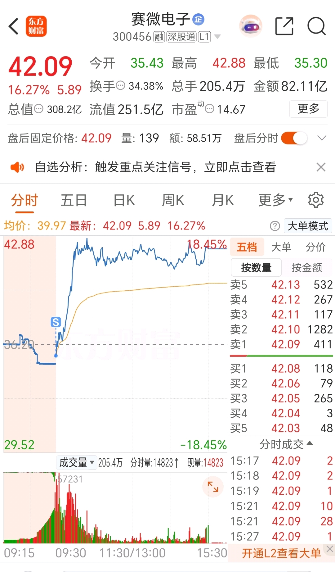 昨天卖出清水源,后续涨停(图2);今天早上卖出赛微电子,后续大涨至18个点;所以