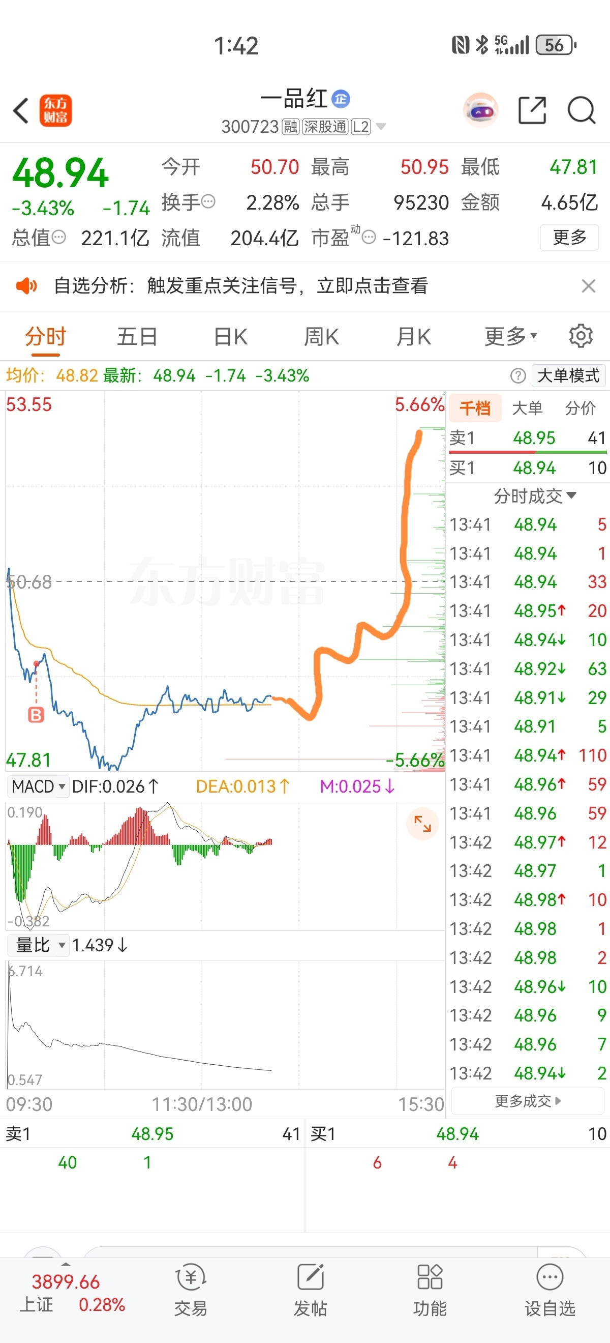 $一品红(SZ300723)$ 下午走势,正看向上,倒看向下