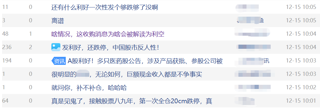 12月15日,A股三大指数集体低开,上证指数跌0.62%,深证成指跌0.81%,创业板指跌1.16%;3800只个股开盘下跌。截至发稿,市场跌幅已有明显收窄。