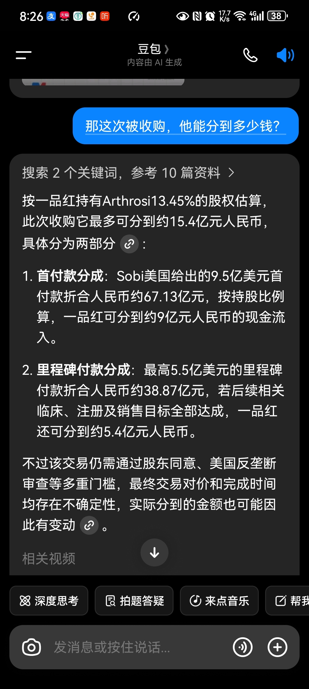 我还以为15亿美元都是一品红上市公司所有,原来按股权才15.4亿人民币是上市公司