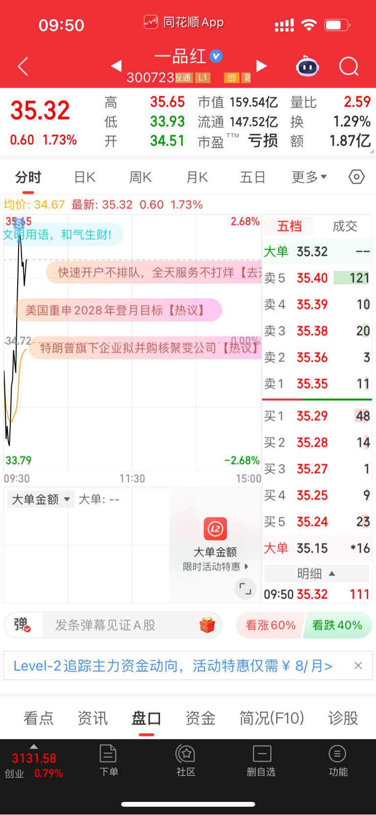 $一品红(SZ300723)$ 批次做T