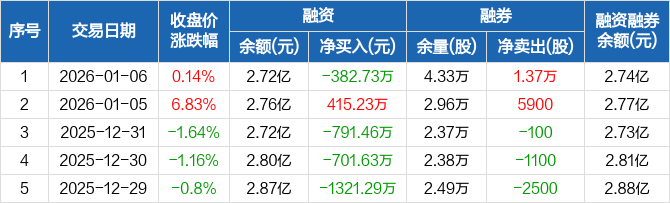 一品红:融资净偿还382.73万元,融资余额2.72亿元(01-06)