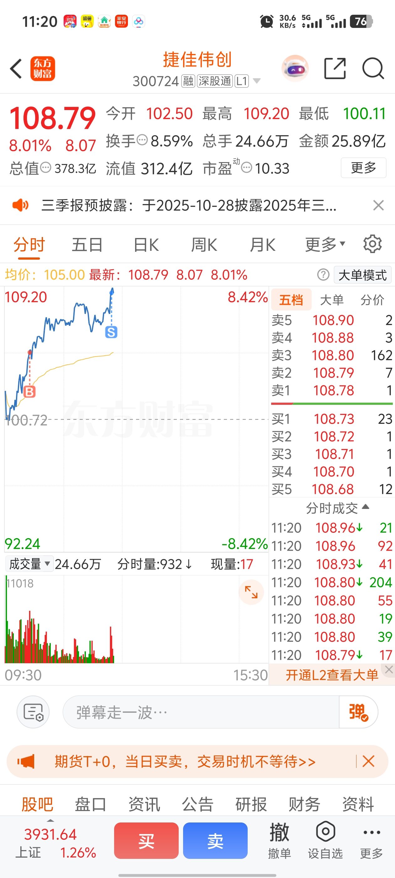 $捷佳伟创(SZ300724)$ 你们赚大头 我做个小T 赚点小钱