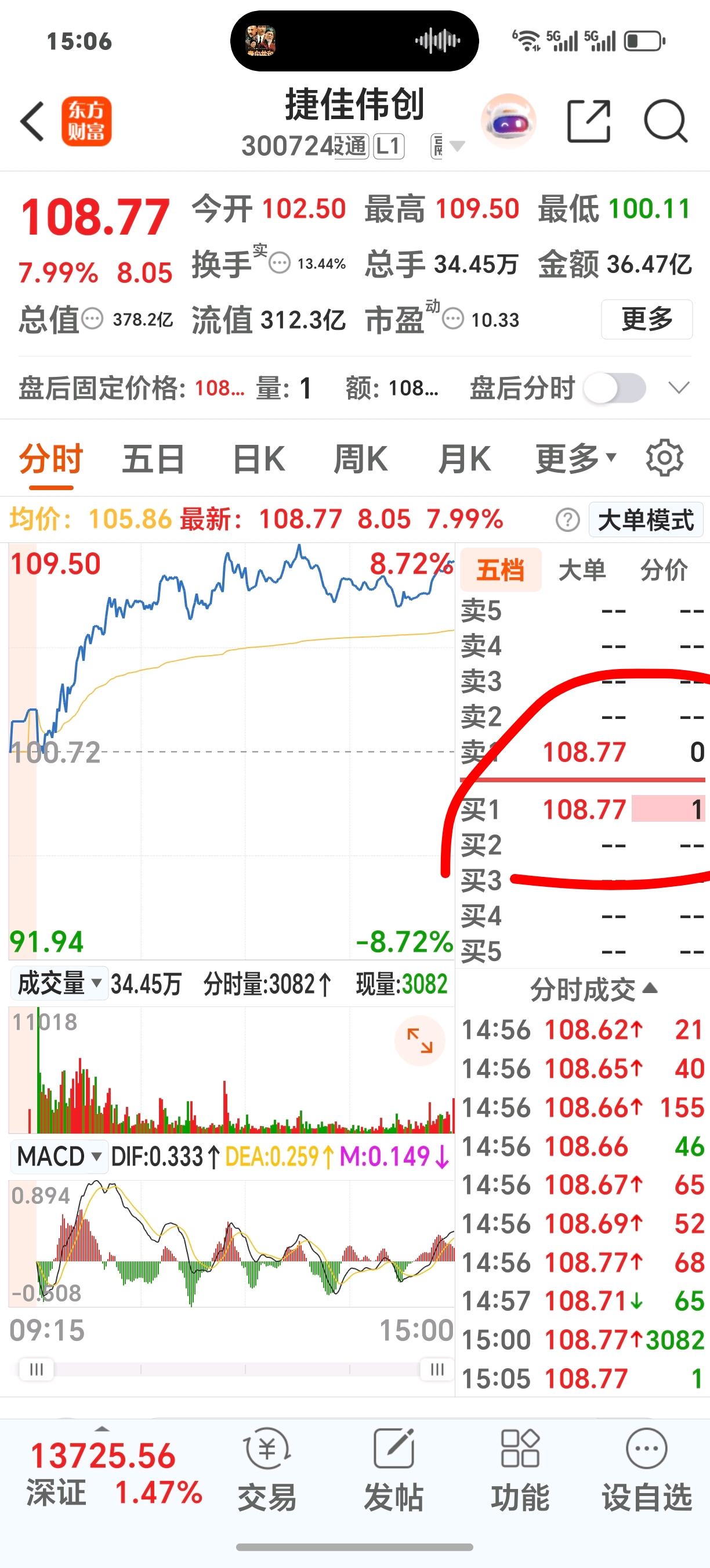 $捷佳伟创(SZ300724)$ 这个真搞笑,没人华单