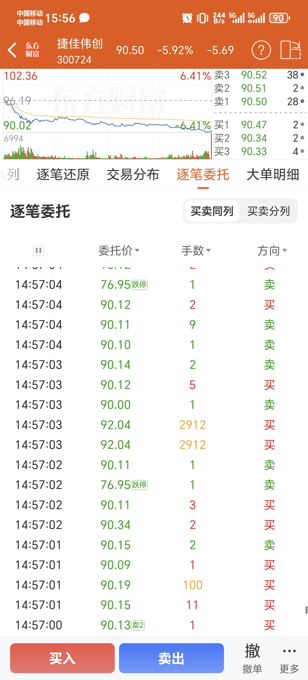 $捷佳伟创(SZ300724)$ 两笔2912手买看着像左手倒右手。