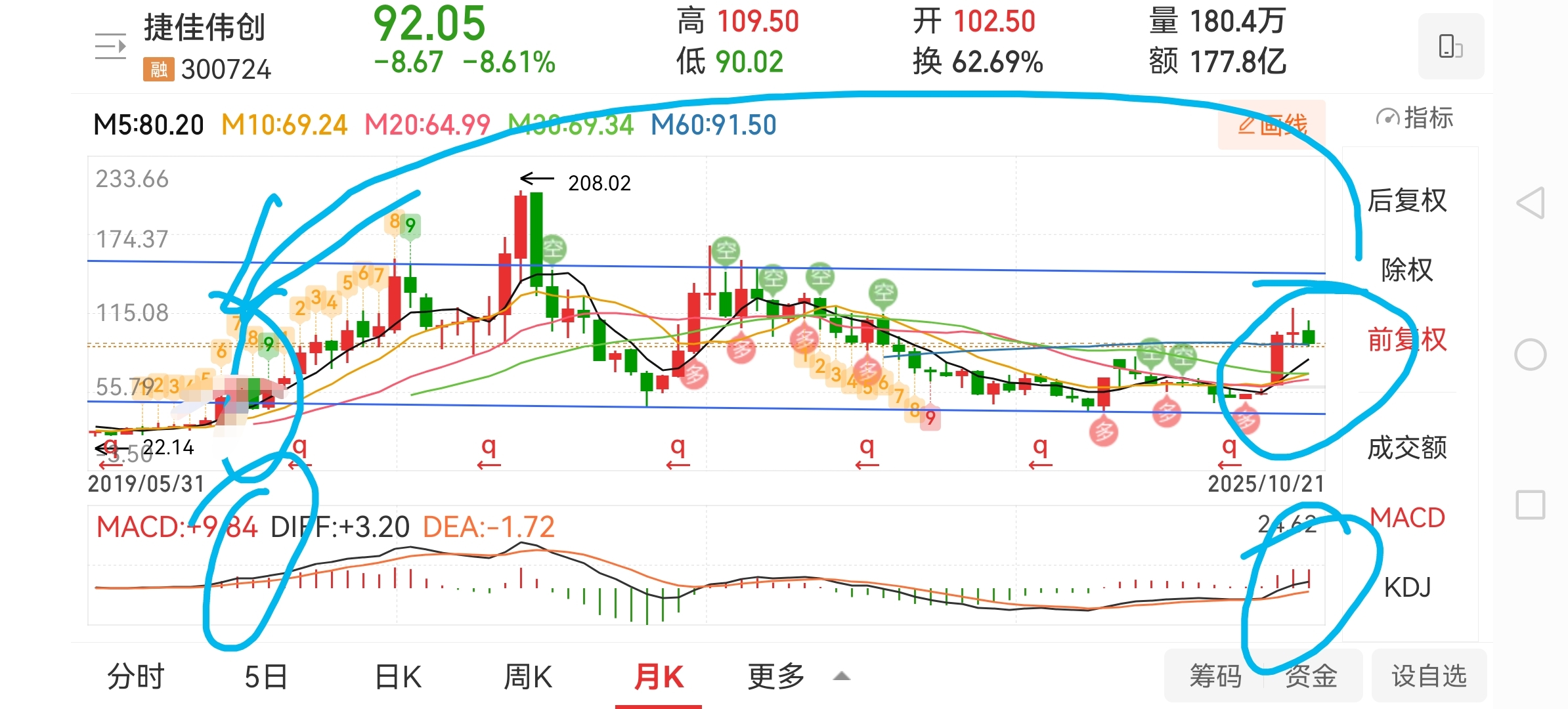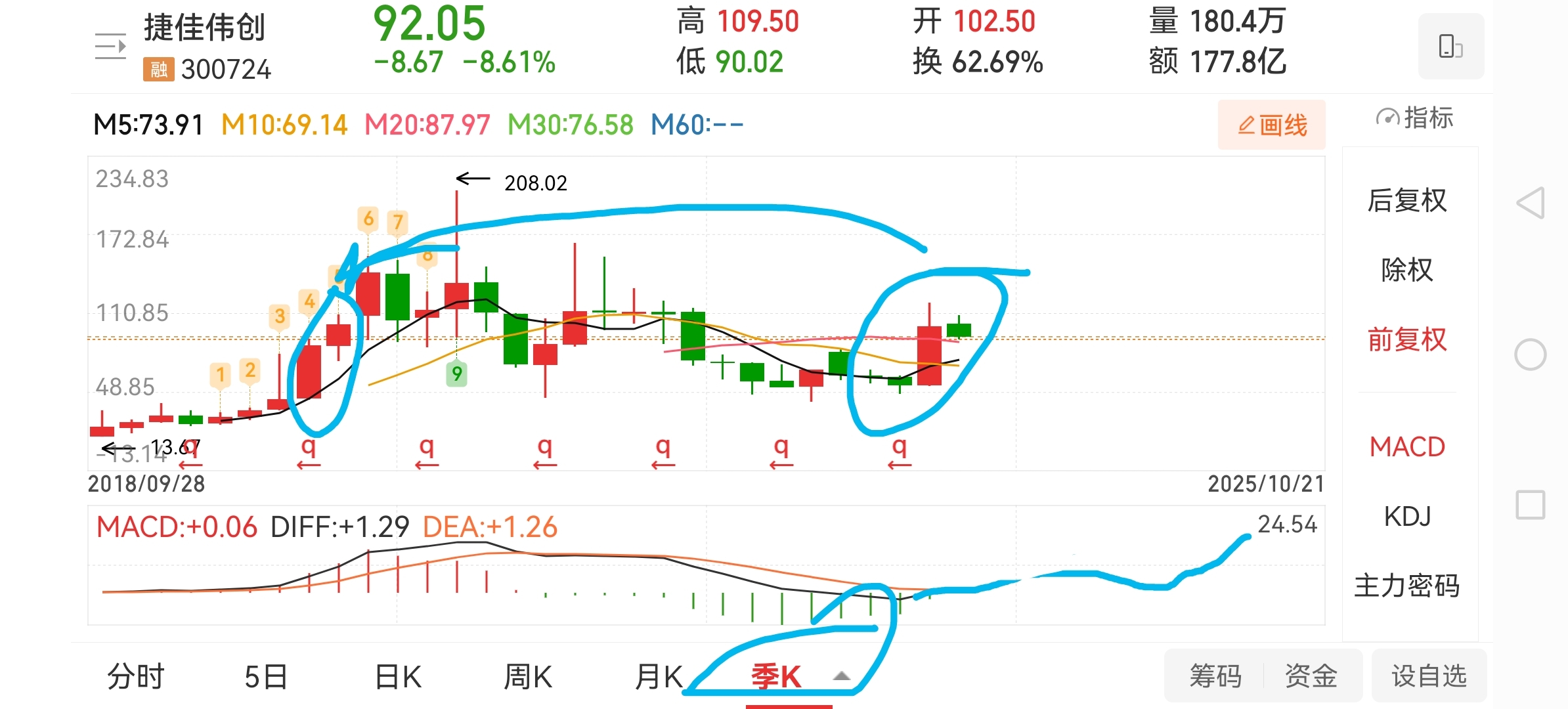 $捷佳伟创(SZ300724)$ 不就是个周线多头二浪调整吗?去看看月线,不就个“空中加油”控制下macd、kdj不宜过高吗?去看看季线,10月是4季度的第1个月,现在的阴线部分难道不是季线收官之后的下影线吗?长线者,水平高的做做T,否则安心拿好便是!
