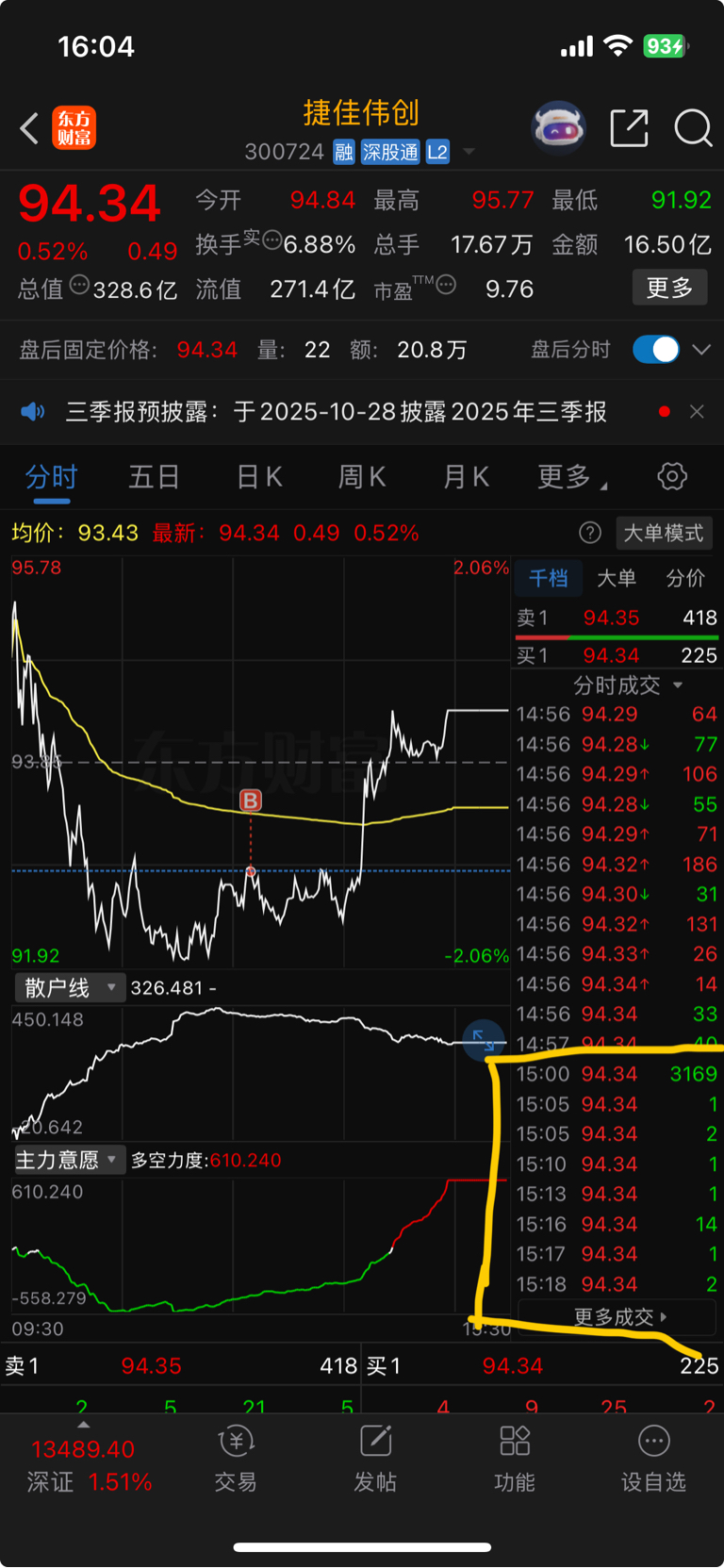 $捷佳伟创(SZ300724)$ 为什么收盘后还有交易?