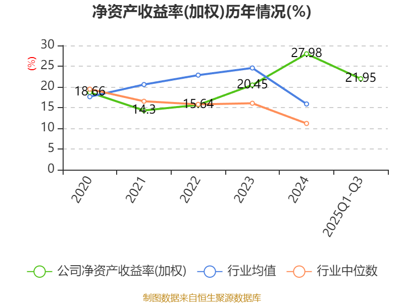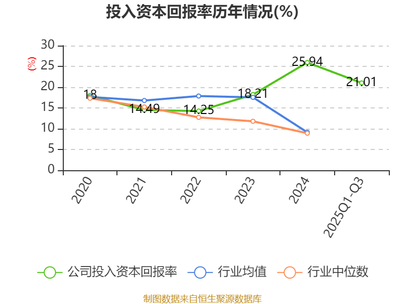 盈利能力方面, 2025年前三季度公司加权平均净资产收益率为21.95%,同比上升0.8个百分点。公司2025年前三季度投入资本回报率为21.01%,较上年同期上升1.48个百分点。